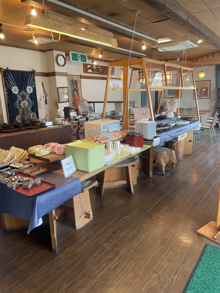 店内の真ん中にはお惣菜コーナーがずらり。お皿に取って自分で定食を作ることもできますし、各容器に入れてお持ち帰りしてもOKです。